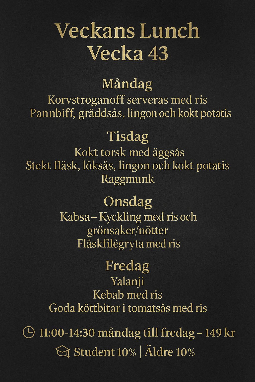 Vi serverar klassiska mellanösternrätter med en svensk twist, alla tillagade med fräscha ingredienser.